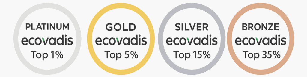 La auditoría Ecovadis evalúa a las empresas en una escala de 1 a 100, determinando el nivel de cumplimiento en responsabilidad social y sostenibilidad. Además, otorga las medallas Ecovadis Platinum, Gold, Silver o Bronze, que reconocen el compromiso con la RSE y abren la puerta a nuevas oportunidades de negocio y mercados.